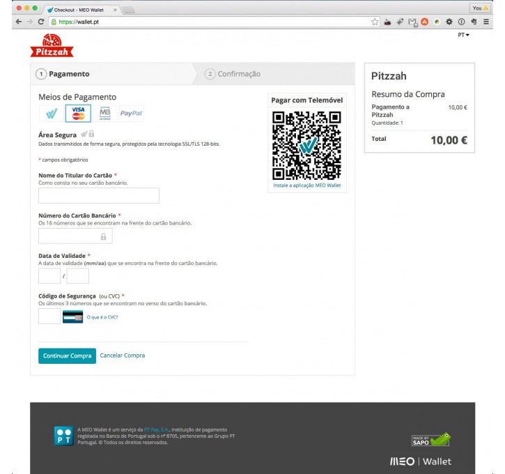The MEO Wallet is an innovative service, with personalized support, which allows you to accept payments on your store, online store or on TV, in a fast, convenient and secure way. All with competitive rates and no other costs. One service and one contract, based on security and confidentiality best practices, to support all essential payment methods - bank cards (debit and credit, VISA and Mastercard), MB References and MEO Wallet balance. Ensure customer satisfaction and enhance your business. Find more at wallet.pt. The MEO Wallet is a service of PT Pay, SA, registered payment institution at the Bank of Portugal under number 8705, belonging to PT Portugal. ©A MEO Wallet é um serviço inovador, com apoio personalizado, que lhe permite aceitar pagamentos no seu estabelecimento, na sua loja online ou na TV, de forma rápida, cómoda e segura. Tudo isto a taxas competitivas e sem outros custos de utilização. Um só serviço e um só contrato, assente nas melhores práticas de segurança e confidencialidade, para suportar todos os meios de pagamento essenciais – cartões bancários (débito e crédito, VISA e Mastercard), Referências Multibanco e saldo MEO Wallet. Garanta a satisfação dos seus clientes e potencie o seu negócio. Saiba mais em wallet.pt. A MEO Wallet é um serviço da PT Pay, S.A., instituição de pagamento registada no Banco de Portugal sob o n.º 8705, pertencente ao Grupo PT Portugal. ©