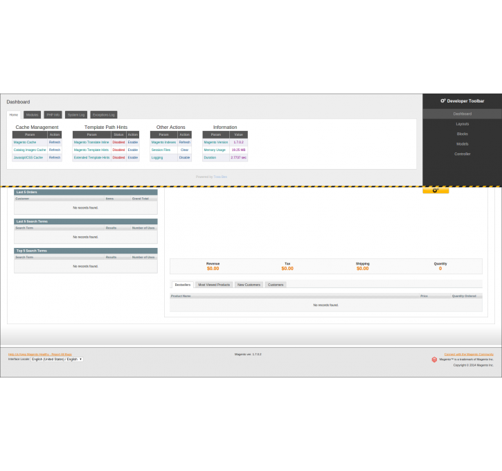 MageCloud partnered with ToxaBes to offer TB Developer Toolbar in your MageCloud panel for our simple 1-click installation option. To install this extension - create your account with MageCloud and launch a new Magento store. It takes only 3 minutes.